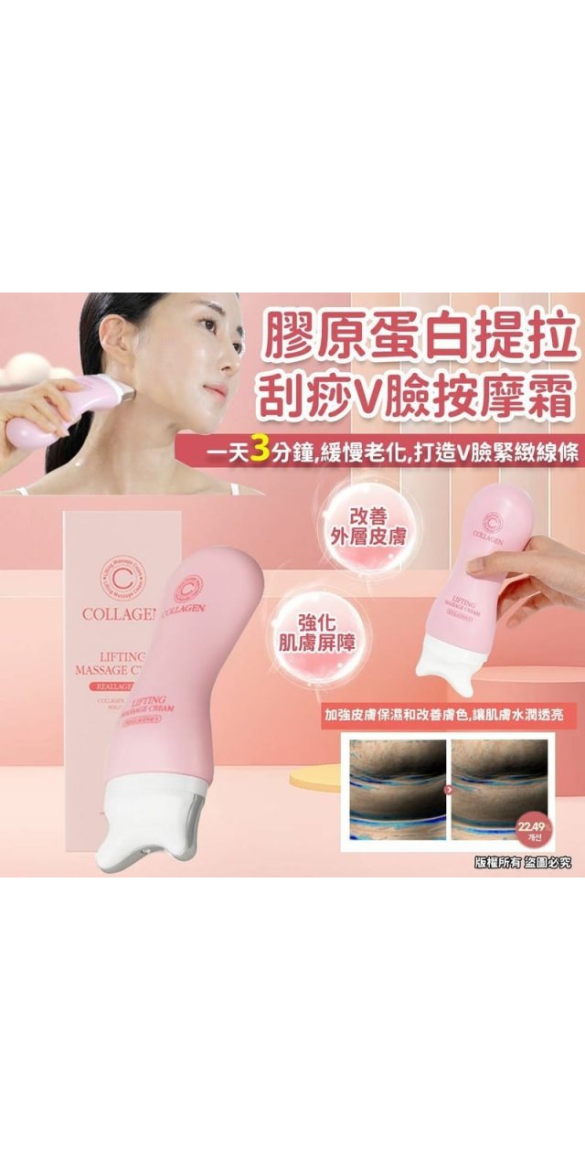 韓國 RIRE Collagen Lifting Massage Cream 膠原蛋白提拉刮痧V臉按摩霜120g (連按摩儀)