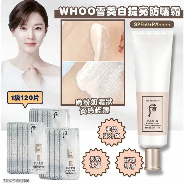 WHOO雪美白提亮防曬霜RADIANT WHITE TONE UP SUNSCREEN SPF+ PA++++ 1袋120片