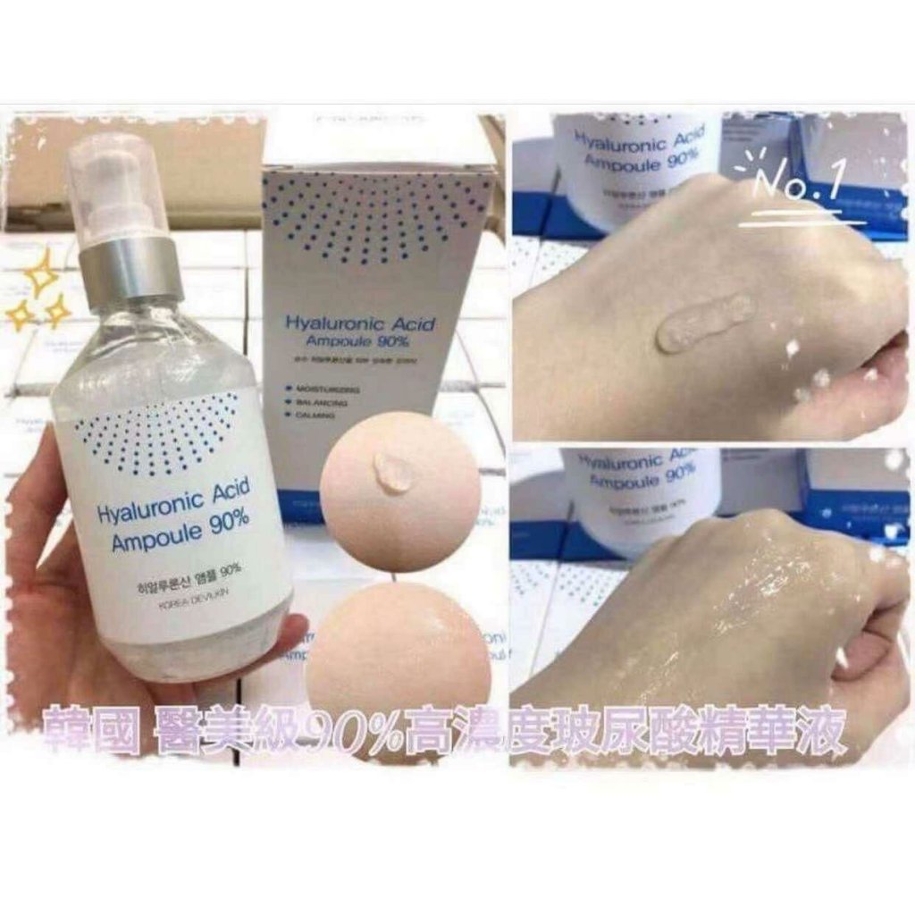 玻尿酸號稱保濕補水界的霸主!可以幫助深度皺紋,提升皮膚含水量以及增加彈性,平時很多保養品多少都會有玻尿酸黎增加保濕功用~~但一整罐的精華液就很少見!仲要入面90%純度直逼醫美效果!而且還不是小小的50ml安瓶~而係一支250ml,真係點搽都唔心疼!!
