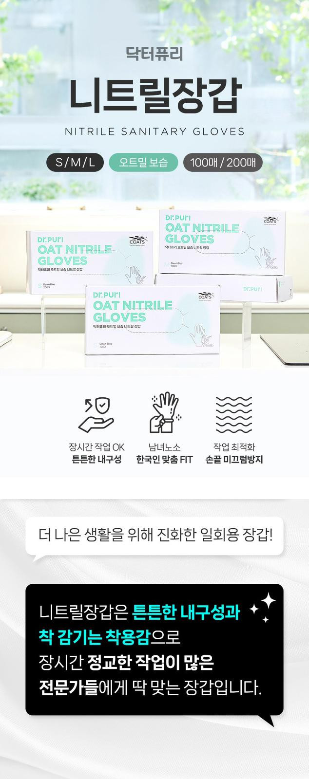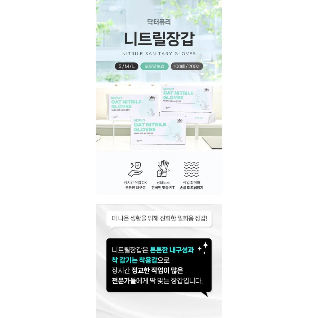 韓國Dr.Puri 丁腈衛生手套3.2g (100入)M SIZE : 98MM