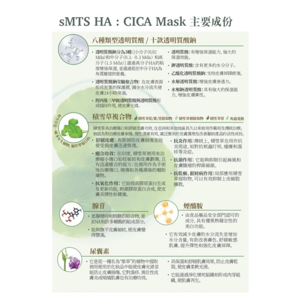 韓國 sMTS HA CICA Mask 積雪草補濕鎮靜紓緩面膜 5片