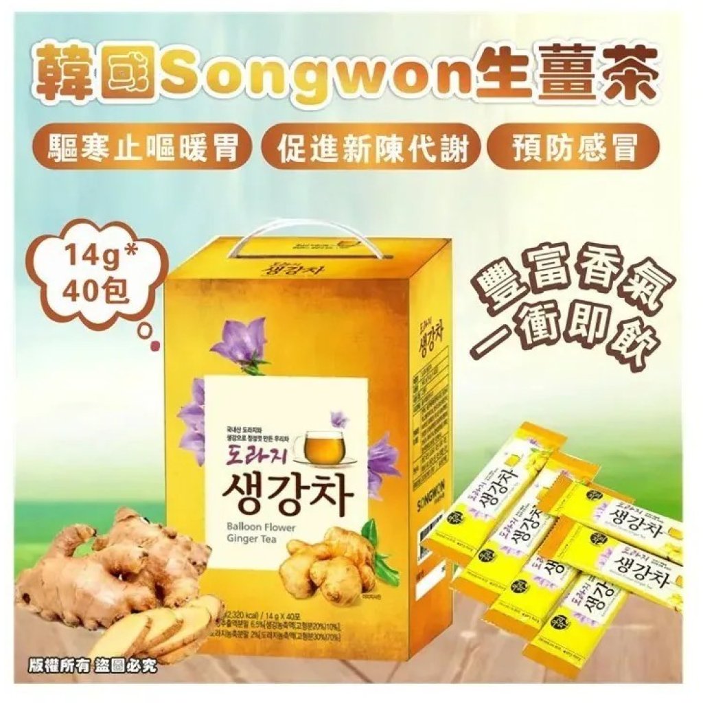 💫SONGWON 桔梗生薑茶嚴選韓國產桔梗與生薑,以傳統工法精心製作而成,口感溫潤,風味獨特。獨立茶包設計,方便您隨時隨地沖泡,享受一杯暖心的茶飲。桔梗與生薑的完美結合,不僅能溫暖您的身體,更能帶來豐富的味蕾享受。無論是寒冷的冬天還是需要放鬆的時刻,SONGWON 桔梗生薑茶都是您的理想選擇。讓這杯充滿韓國風味的茶飲,為您的生活增添一份溫暖與美好。