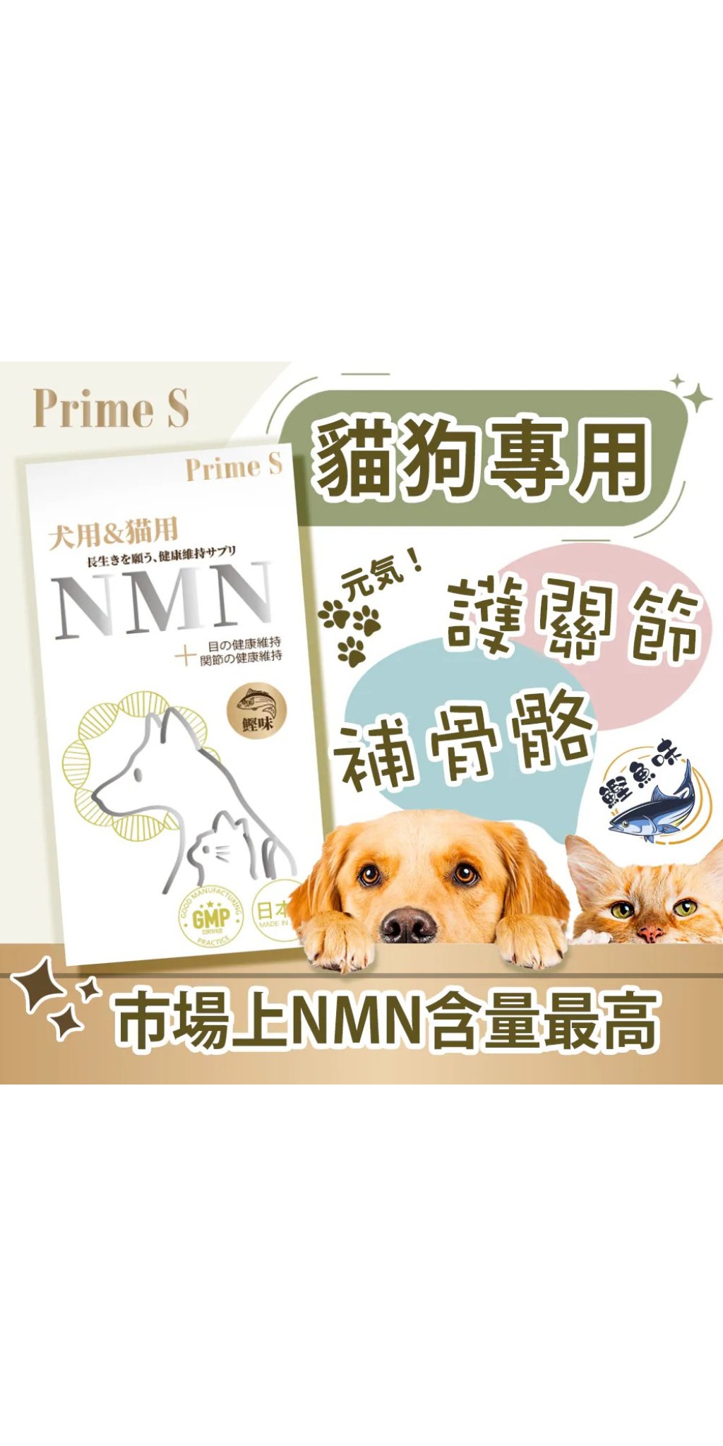 Prime S - 寵物專用NMN抗老修復護眼強骨補充膠囊 (鰹魚味) (430mg X 60粒)