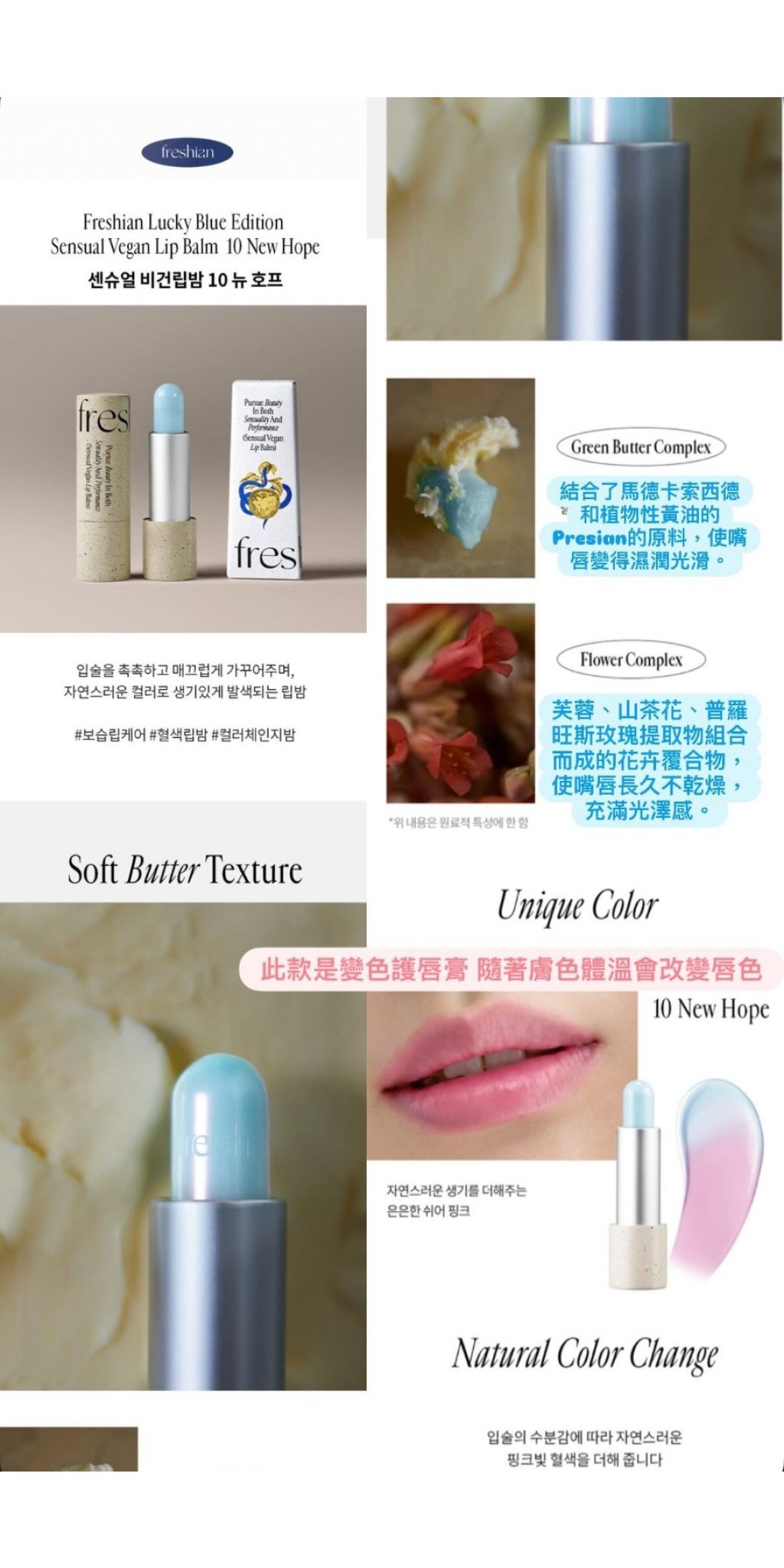 韓國Freshian 純素潤色唇膏3.3g-幸運藍色版#色號NewHope