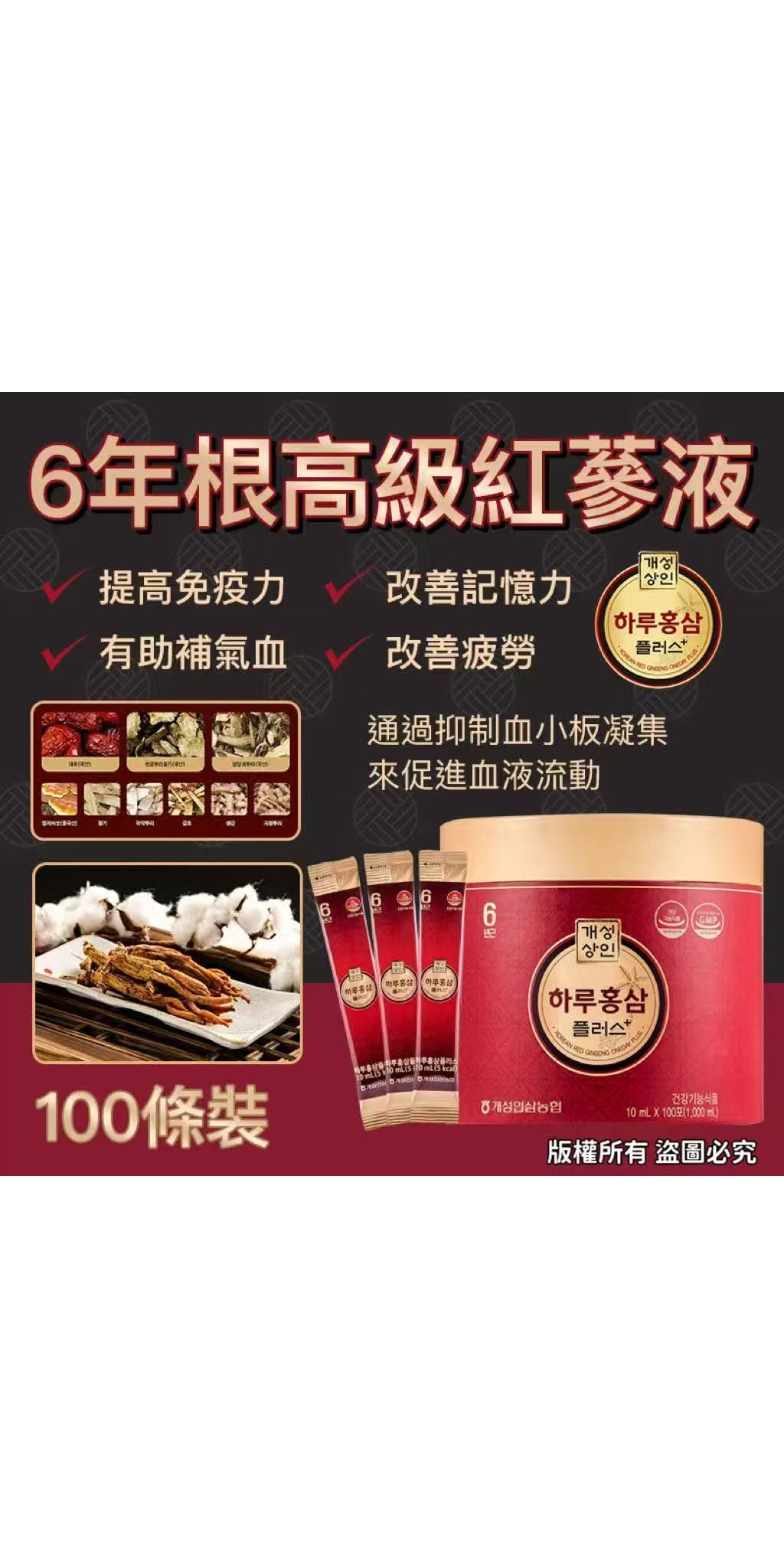 韓國生產 韓國品牌 🥇 100年老牌6年根紅蔘液 🥇