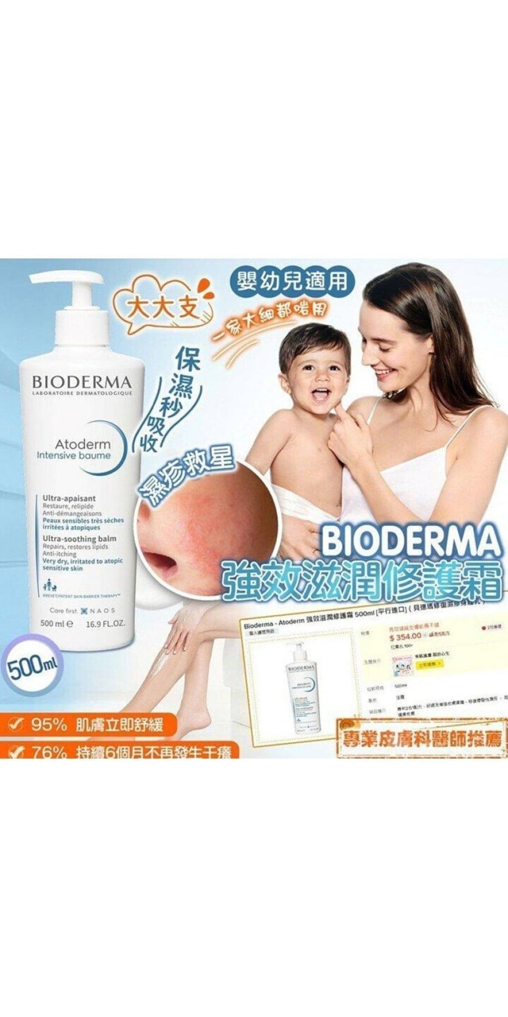 濕疹救星救星 🌟 大人小朋友濕疹恩物✨✨ BIODERMA 強效滋潤修護霜, 大大支 500ml #全新包裝