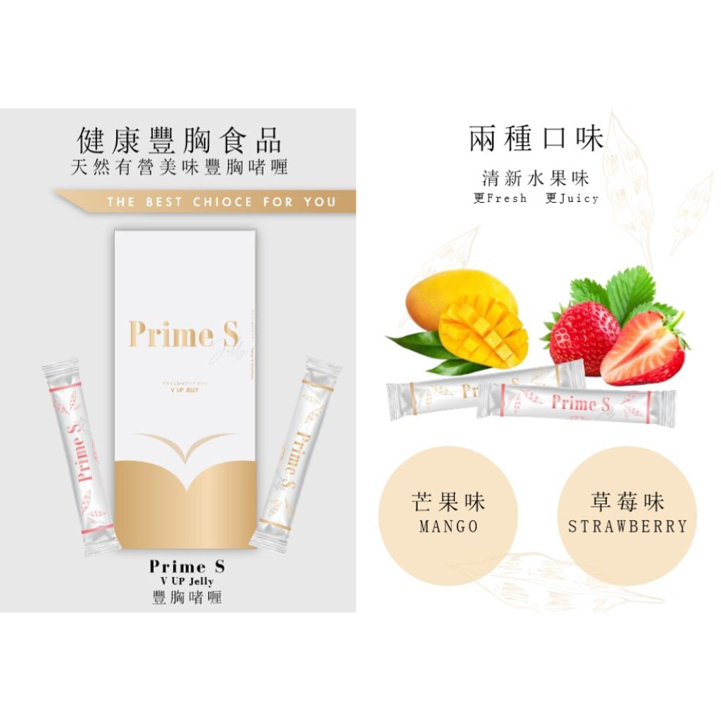 Prime S豐胸啫哩味道迎合女性喜愛,啫喱1盒有兩款口味:士多啤梨、芒果,味道似食零食般好味。