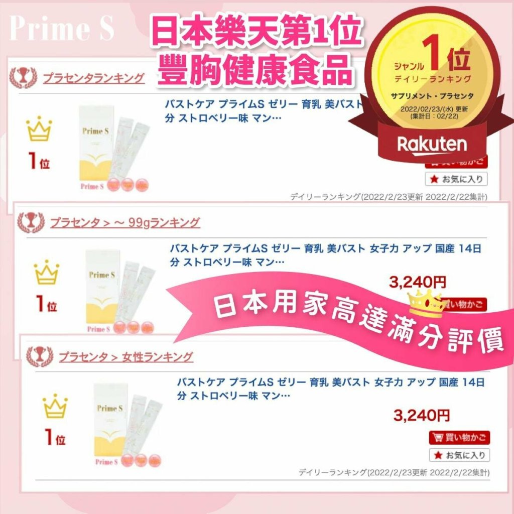 Prime S豐胸啫哩能有效地增加乳房脂肪,獨有的胎盤素成份,能減少細紋、防老化,活化人體「端粒酶」,激活乳腺及乳葉細胞。