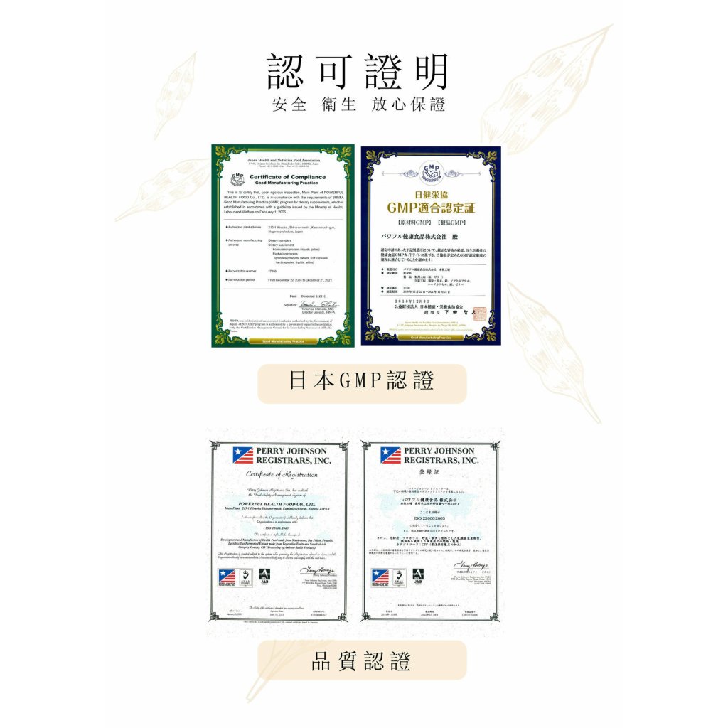 100%日本制,獲GMP、ISO認證及日本藥物安全局認證