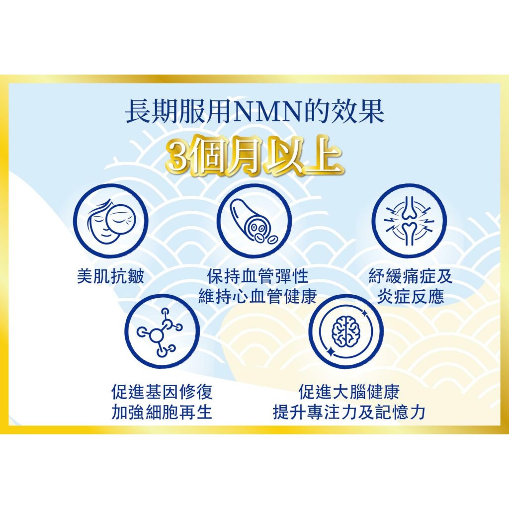 *60歲以上、體重適較重建議每天服用1000mg NMN(3粒)劑量
